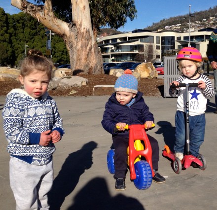 Poppy has been ‘Hangin’ with her Homies‘ this morning at the park – a beautiful morning for a bit of scooting and playground action. Luka, Poppy and Lexie all met in our Mother’s group and love hanging out together – as do their Mums. Xx