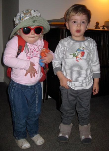 Poppy and Luka also hung out yesterday afternoon and she insisted on dressing up in his glasses, hat, gloves and pack! She looks like she should be on the set of Moonrise Kingdom!