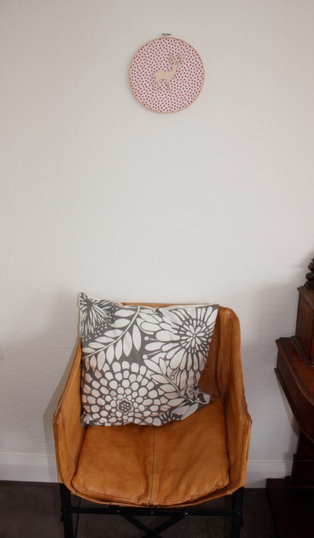 After a trip to Spotlight with James asleep in the pram, I picked up an Embroidery Hoop and tried to find the perfect fabric to showcase the deer. Just as I was entering the patchwork collections, my little man had other ideas and decided to wake. I couldn’t concentrate on trawling through the many fabrics, so I retreated home with my hoop.
